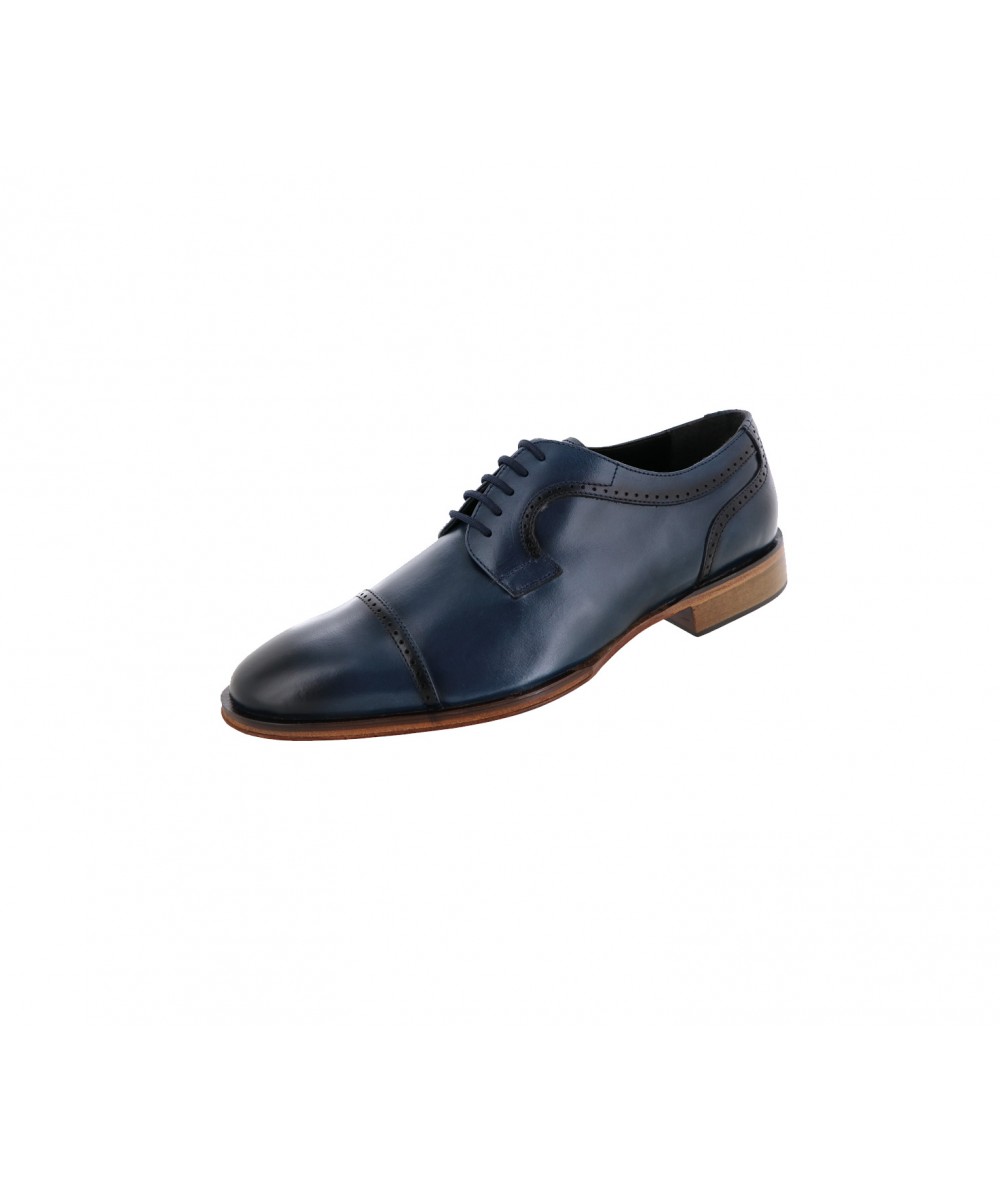 Derby de piel natural en color Azul, con suela de cuero flexible y forro de piel sintético que transpira y antihongos. Una opción de moda para vesitr con elegancia todo el año.